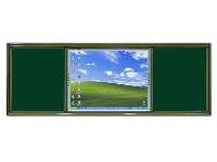 根據(jù)教室線路分布及投影吊裝位置,合理確定電子白板在框架內(nèi)的擺放位置(左、中、右)。邊框采用推拉式軌道,可輕松拉動外層滑動板,實現(xiàn)電子白板與綠板之間的自由切換,簡單方便;在推拉綠板左右安裝防碰撞橡膠墊圈,以減少撞擊力和噪聲。